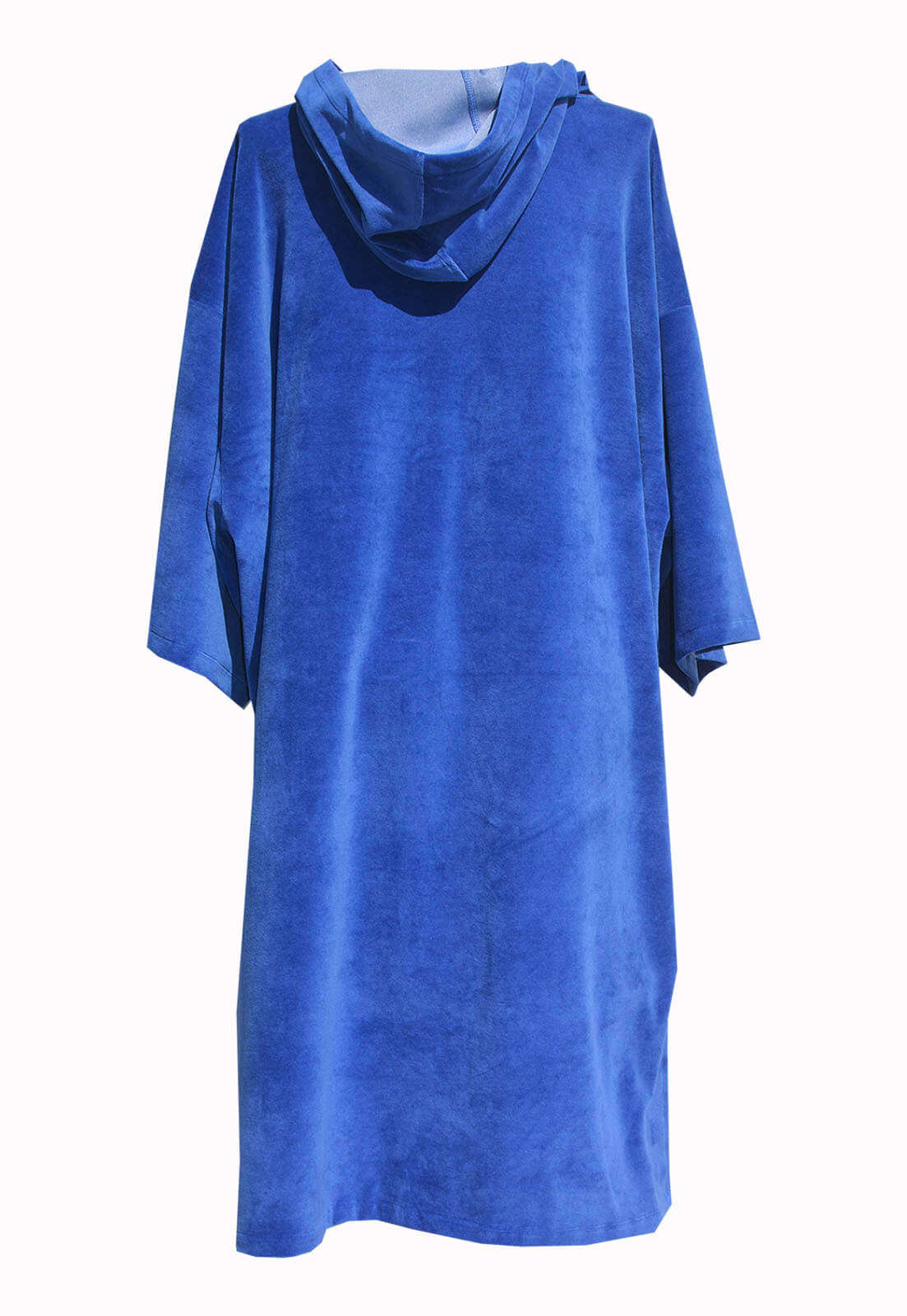Poncho Azul Royal em Plush com capuz, para você se secar e se trocar sem passar “perrengue”.