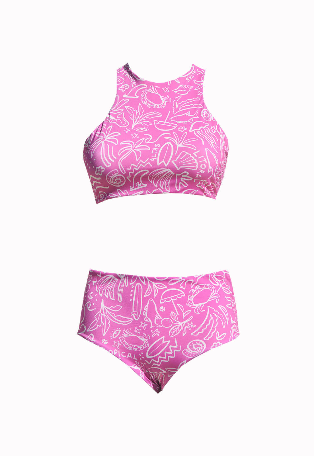 Sunguete surf dupla face Pink Ocean, com modelagem ajustada ao corpo e com cintura alta. Para surfar, remar, velejar ou curtir uma praia ou piscina.